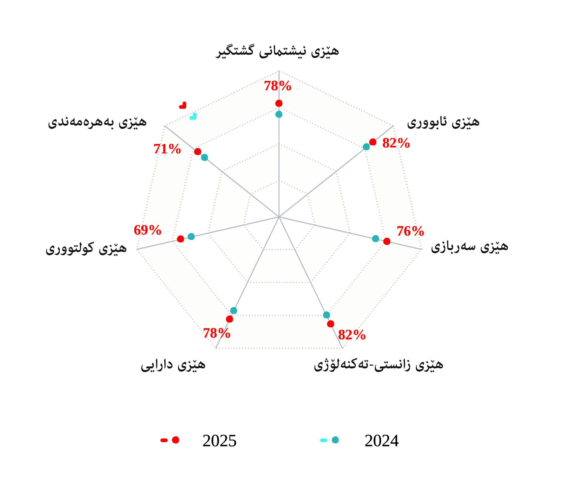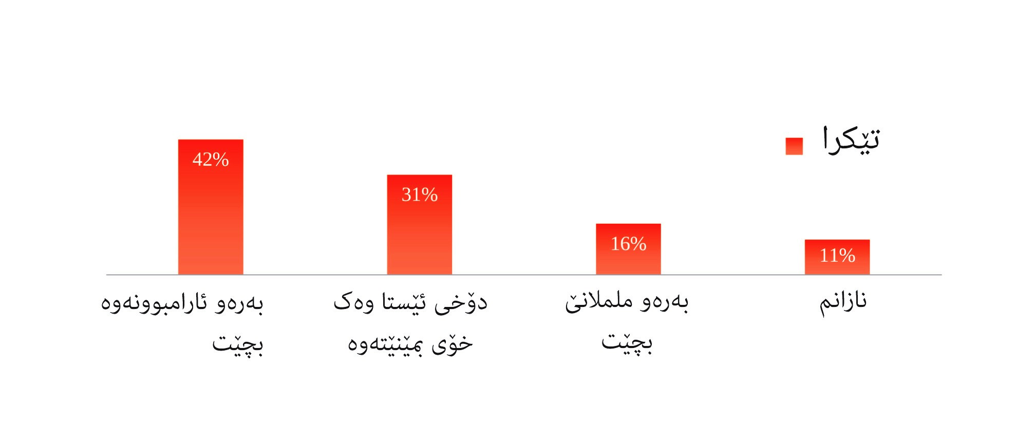 تێبینی: هێڵکارییەکە ڕێژەی ئەو کەسانە نیشان دەدات کە وشەی "بەهێز"یان هەڵبژاردووە.